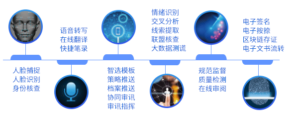 系統(tǒng)具有快捷筆錄、群體性案件協(xié)同問話、專家遠(yuǎn)程指導(dǎo)偵查、筆錄過程監(jiān)督、案件關(guān)鍵線索提取、自動(dòng)核查、聯(lián)盟核查、交叉分析等功能,支持多版本電子簽名按捺設(shè)備對接,實(shí)現(xiàn)筆錄文書電子化。