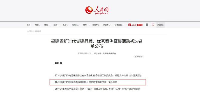 近日,人民網(wǎng)福建頻道公布了福建省新時代黨建品牌、優(yōu)秀案例征集活動名單。