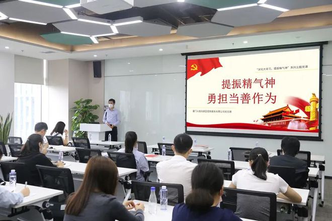 接著,招商中心黨支部許峰書記為在座黨員上了一堂主題為《提振精氣神,勇?lián)斏谱鳛椤返狞h課。許峰書記系統(tǒng)講解了擔當一詞的由來和內(nèi)涵,新時代新?lián)數(shù)幕疽蟆斪鳛槭屈h員的基本素質(zhì)以及新時代的黨員干部如何擔當作為,并與在座黨員分享自己的所思所想所悟,進一步激發(fā)黨員干事創(chuàng)業(yè)的精氣神,鼓舞黨員擔當作為的高昂士氣,筑牢信仰之基、補足精神之鈣、把穩(wěn)思想之舵。