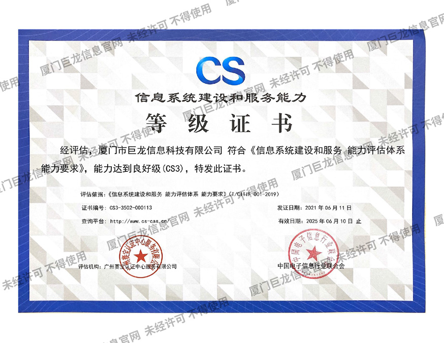 信息系統(tǒng)建設(shè)和服務(wù)能力等級證書