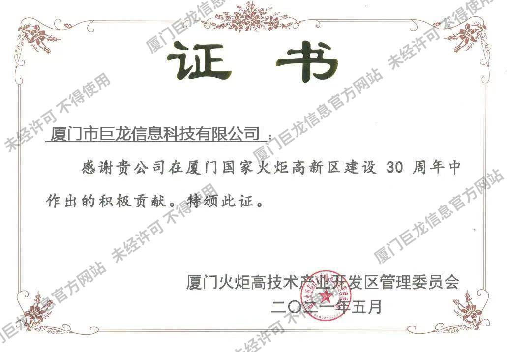 火炬高新區(qū)“突出貢獻企業(yè)”證書