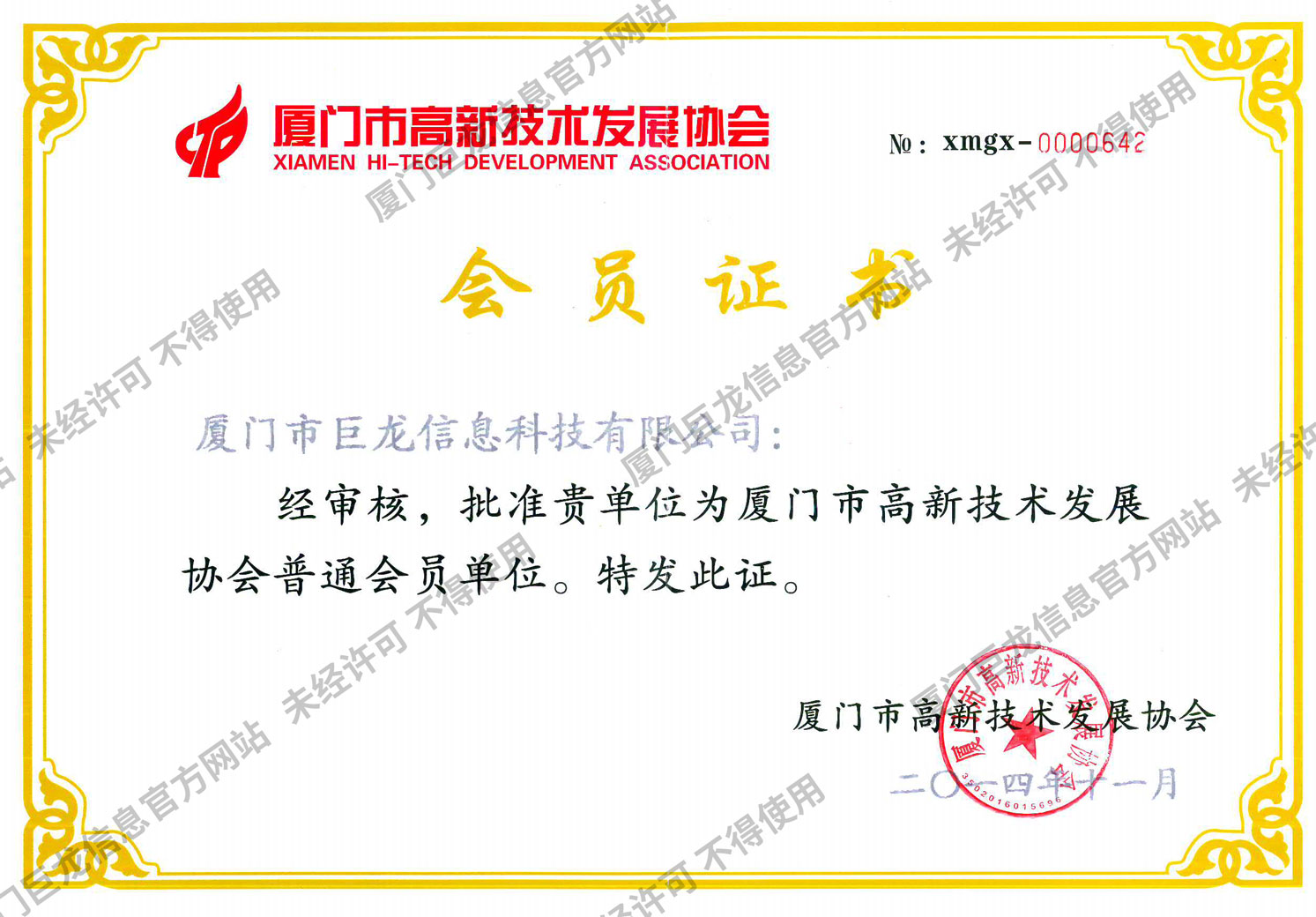 高新技術(shù)發(fā)展協(xié)會會員證書