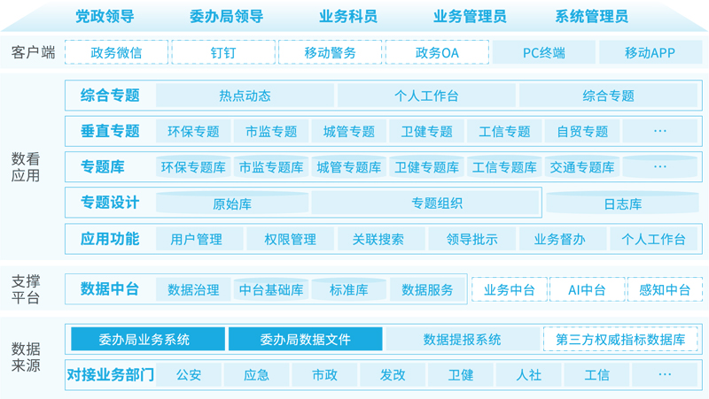 我們服務(wù)的客戶跨越新一線城市到到四線城市、擁有數(shù)據(jù)駕駛艙指標(biāo)體系構(gòu)建需求的各級單位,已服務(wù)財政局、市監(jiān)局、統(tǒng)計局、公安局、自然資源局、稅務(wù)局、供電局、林業(yè)局、海關(guān)局、金融局、商務(wù)局等超過30個,已建設(shè)超過200個主題板塊,沉淀超過1000個核心指標(biāo)。同時持續(xù)對采集的實時數(shù)據(jù)進行多維分析,深挖高價值數(shù)據(jù)指標(biāo),洞悉指標(biāo)間關(guān)聯(lián)關(guān)系,幫助客戶降低行政管理成本、提高科學(xué)化決策水平。