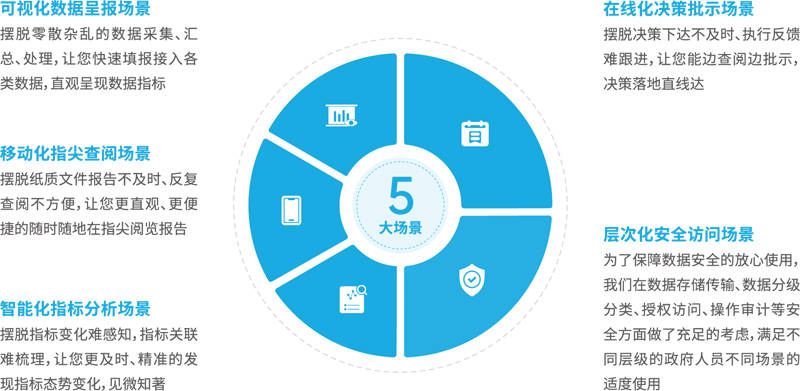 通過詳盡的指標(biāo)體系,實時反映政府的運行狀態(tài),將采集的數(shù)據(jù)形象化、直觀化、具體化。